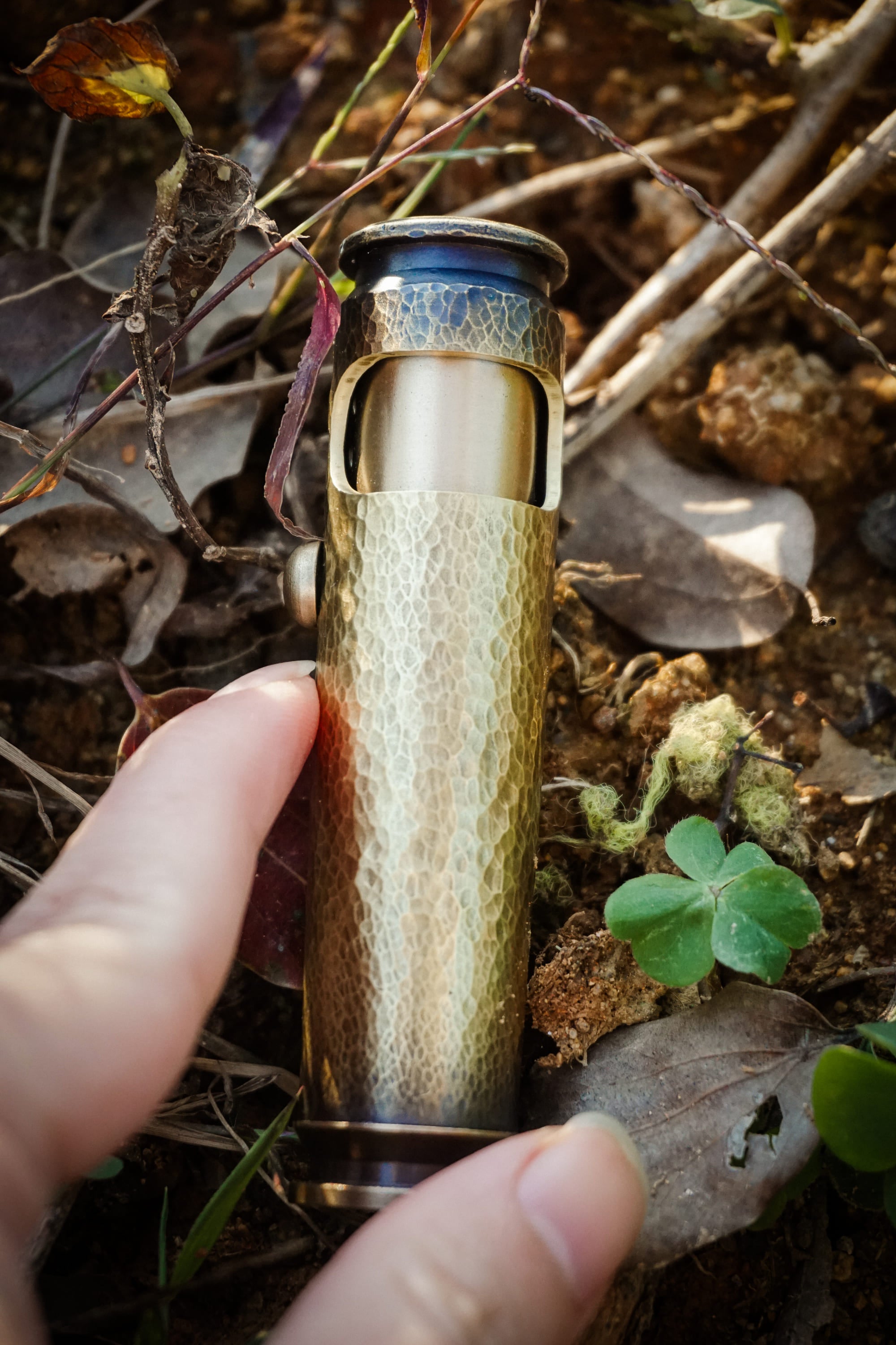 The mass of a real brass casing gives the hammer marks stability and clarity.