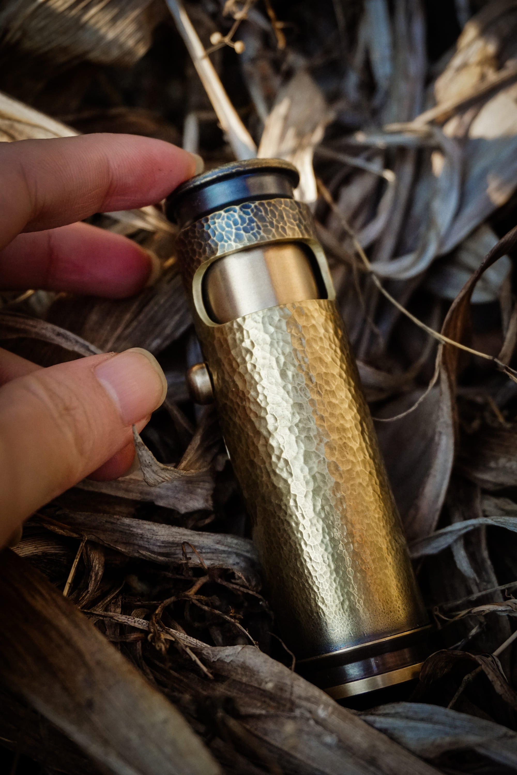 - Hand-hammered surface texture