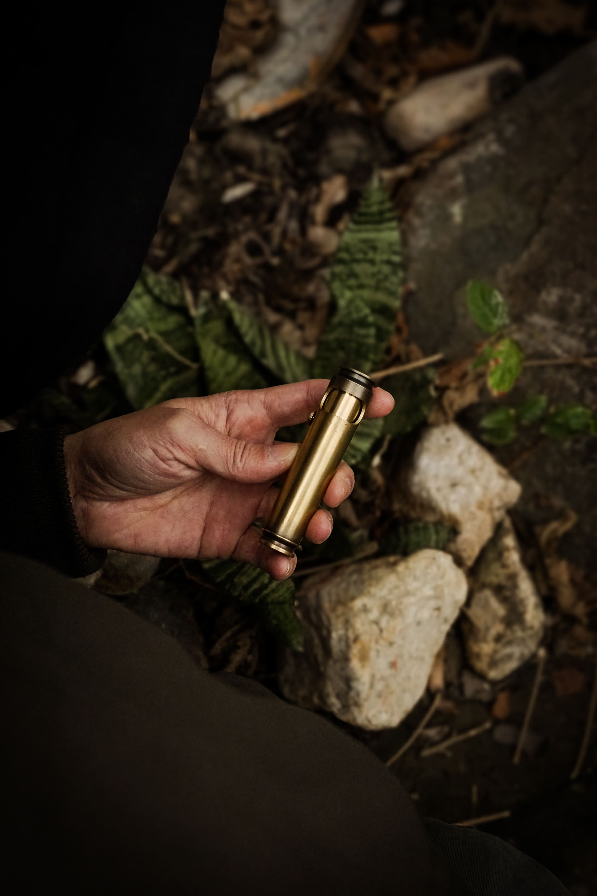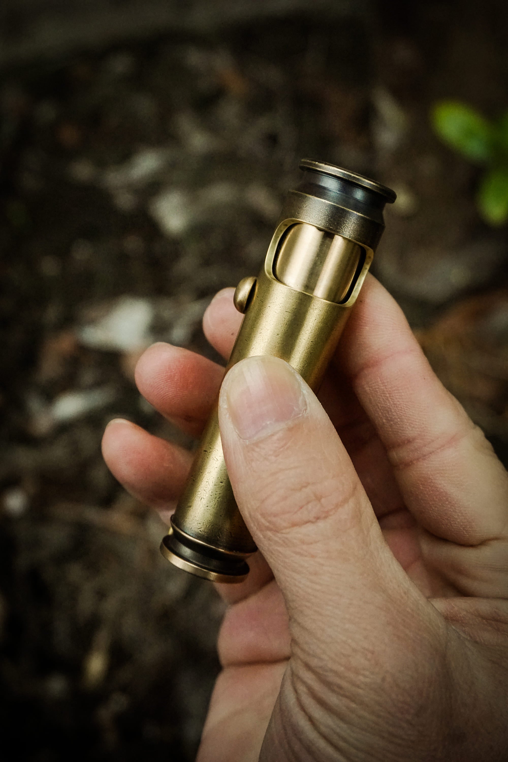 Classic Medium is built from a reclaimed .50 BMG brass cartridge (12.7 × 99),